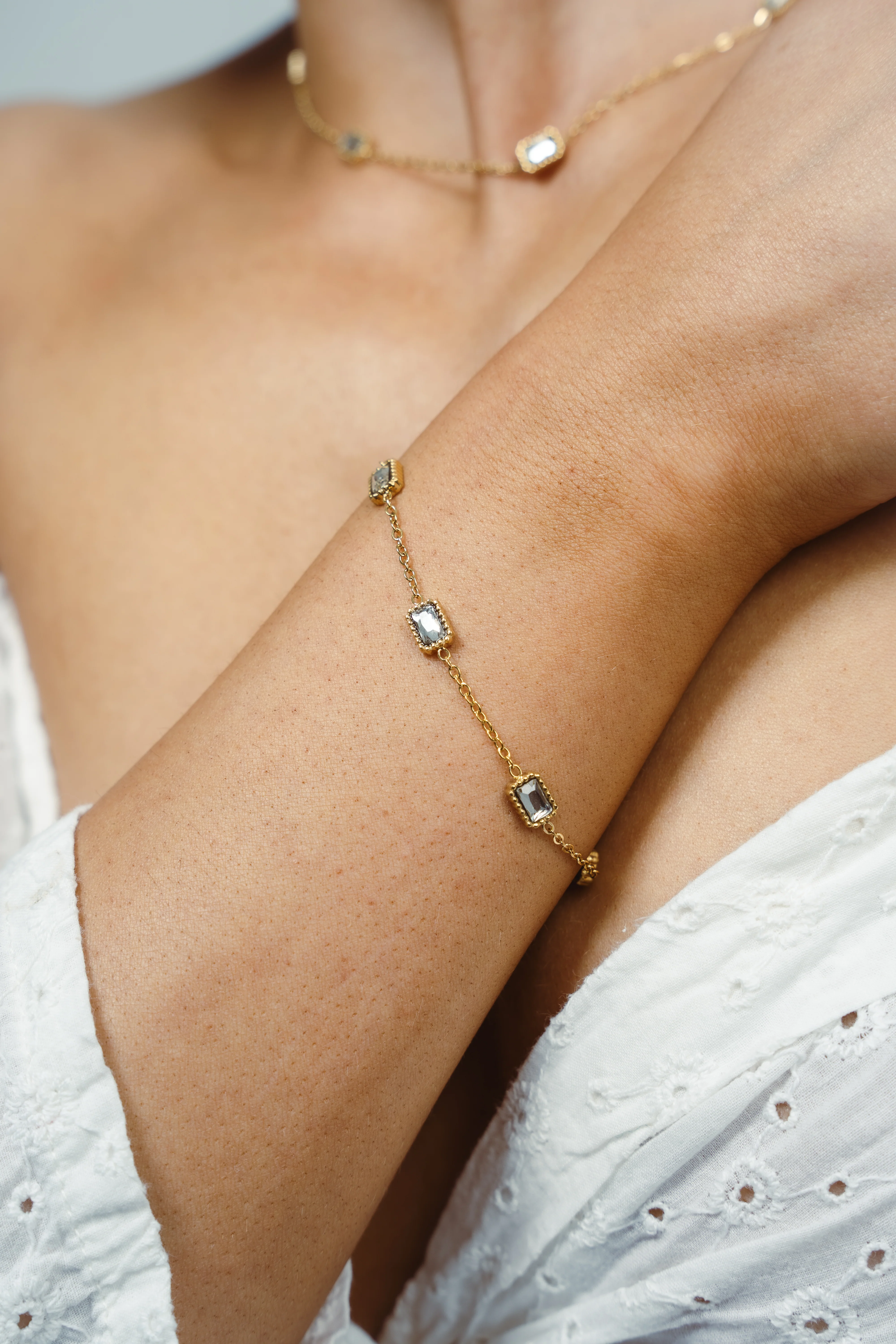 The Connemara Crystal Bracelet draws its inspiration from the breathtaking beauty of Connemara, a region in western Ireland renowned for its rugged landscapes and pristine natural beauty.