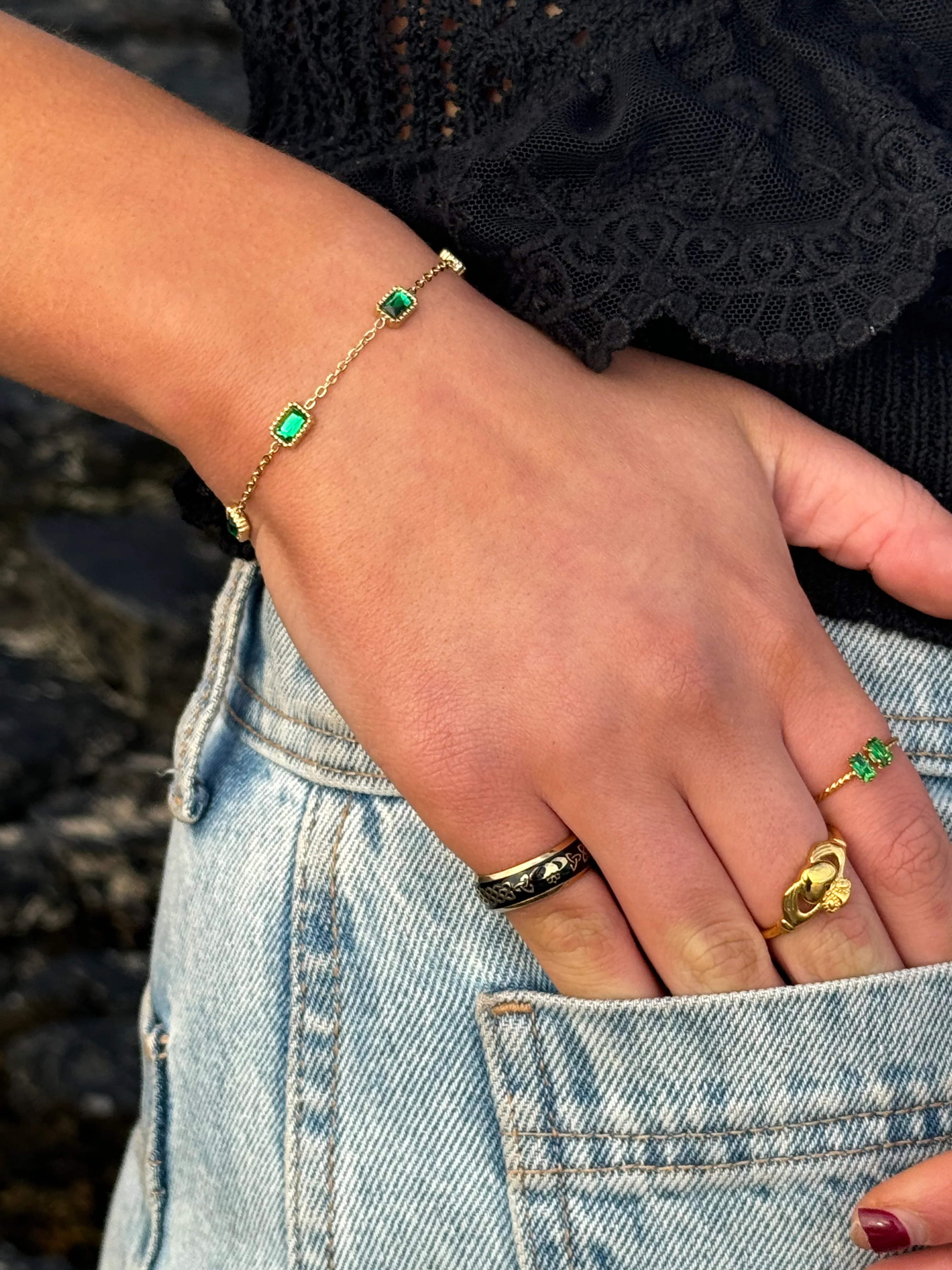 Discover timeless elegance with our adjustable emerald stone ring, featuring radiant green zircon stones in a durable, tarnish-free setting.