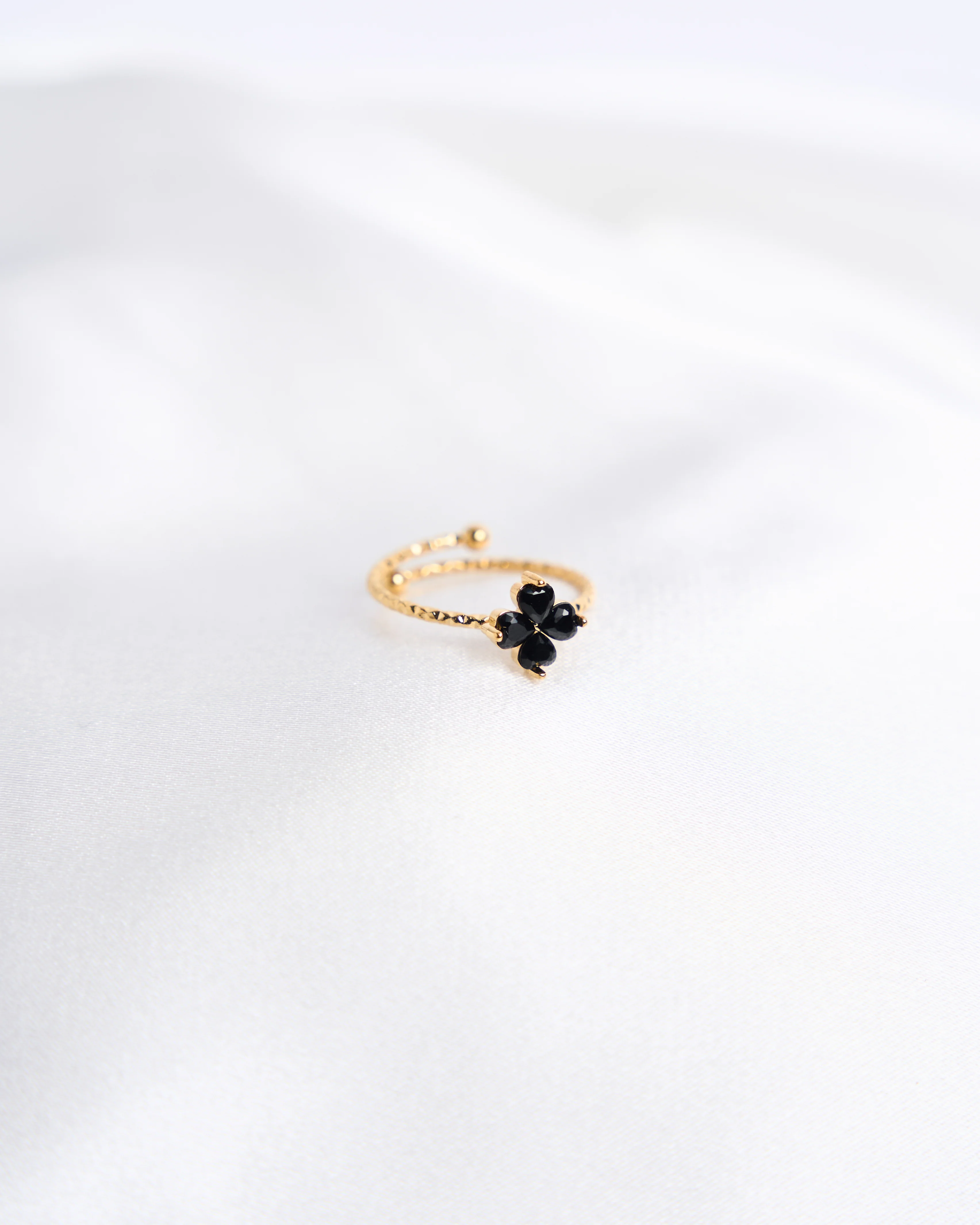 Inspired by one of Ireland’s most recognisable emblems, the four-leaf clover is believed to bring good fortune and positivity to those who wear it. Set on a fine, adjustable band, this ring is designed for everyday wear — simple, elegant, and full of meaning.