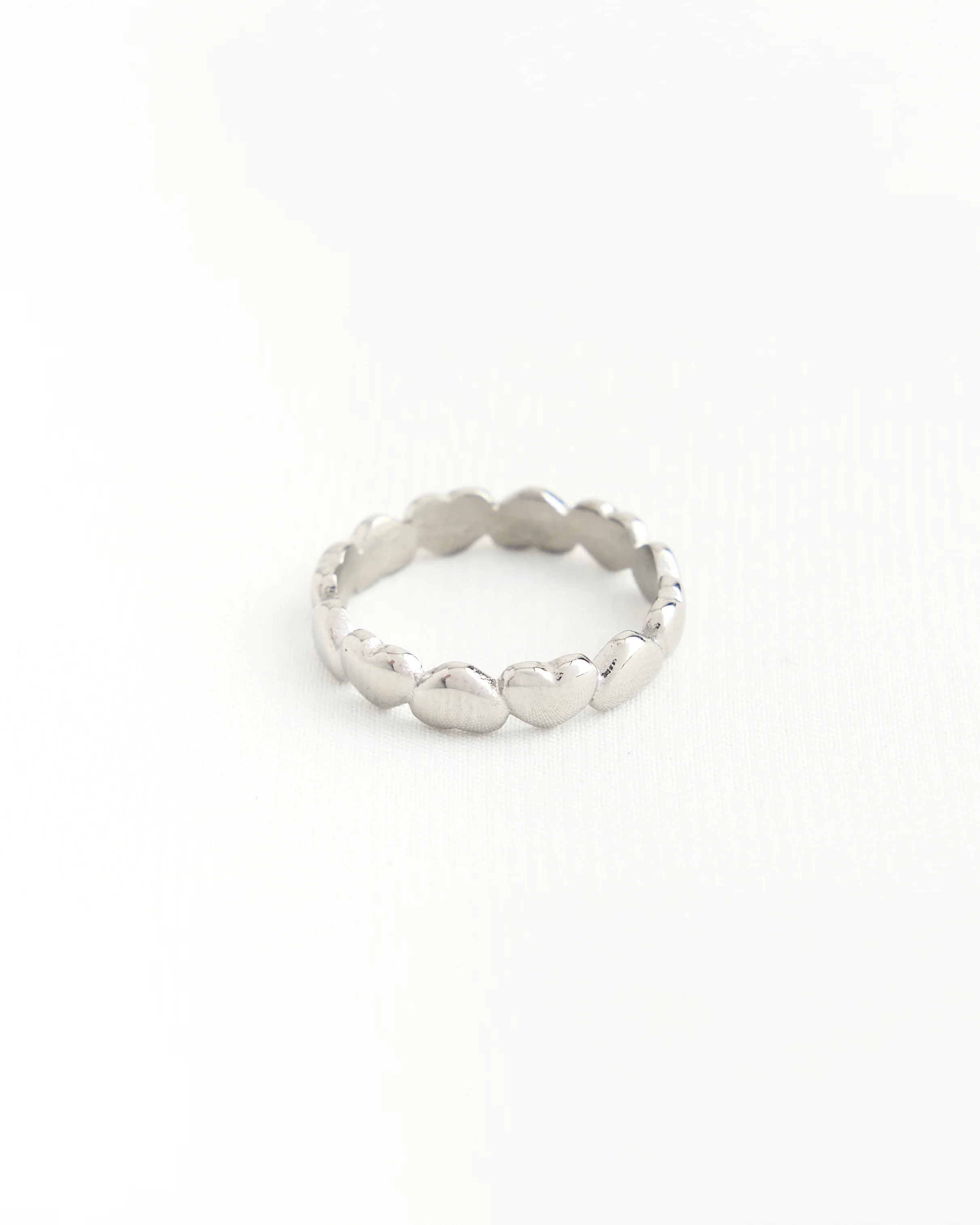 The Heart Ring features a charming design of alternating hearts—some standing upright, others upside down—circling the entire band. This playful yet elegant pattern makes a sweet statement of endless love and connection.